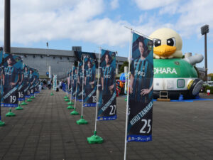 この日は、チームが連携協定をしている綾瀬市のホームタウンデーで、橘川佳彦市長をはじめ、多くの綾瀬市民の方も来場し、チームも盛り上げに協力させていただきました。