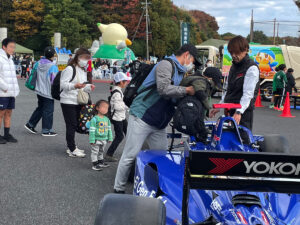 初めてフォーミュラカーを見た方も多く、乗車体験には子どもたちだけでなく、多くの方に体験していただきました。「以前はレース観戦に行っていた」という方もいて、モータースポーツへの思いを呼び覚ましていただいたようです。
