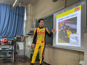 2月2日、B-Max Racing Team(チーム総代表 組田龍司)に所属する木村偉織選手は、地域活性化で連携している神奈川県綾瀬市の市立綾南(りょうなん)小学校(橋口聡子(はしぐちさとこ)校長)において、5年生2クラスを対象に出前授業を行いました。