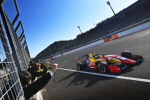 オープニングラップの先陣争いで、6台がリタイアするという荒れたレースになりました。野村選手は、小林選手に背後につけられたものの、セーフティカーランからのリスタートも確実に決めて、第16戦に続くポール・トゥ・ウインで11勝目を飾りました。この優勝で、チームは2023年以来となるチームタイトルを決めました。